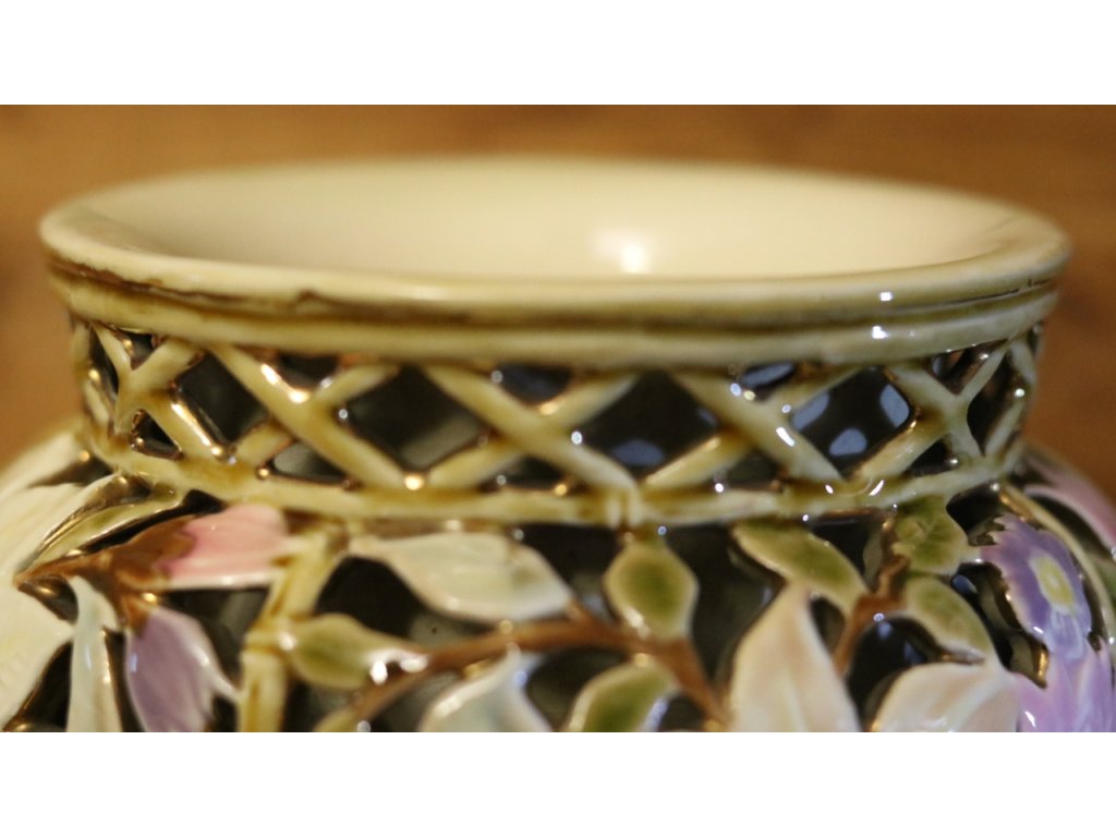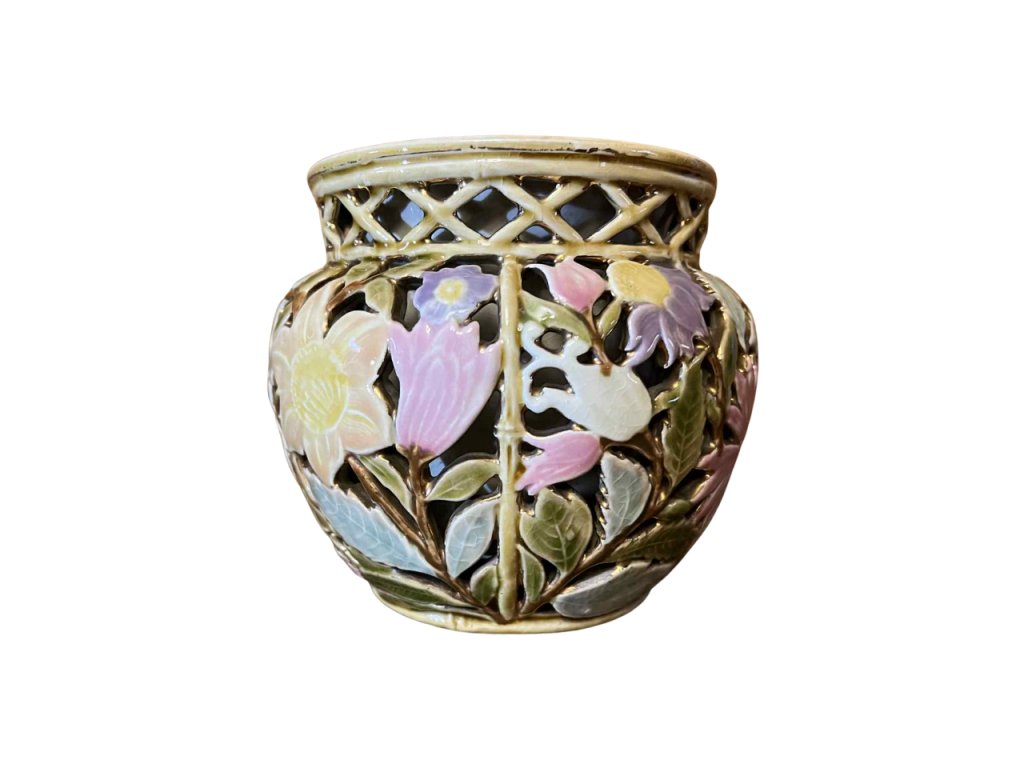 Zsolnay Pécs rokokó áttört kaspó – 1880-as évek, forma 2584